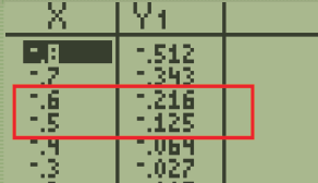 On en déduit que la solution se trouve entre -0,6 et -0,6 car $f(-0,6) < -0,2 < f(-0,5) $.