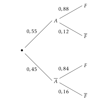 Remarque : $(D\geq 48)\cap(D\geq 54)=(D\geq 54)$.Partie B : Étude des pannes d'origine électronique