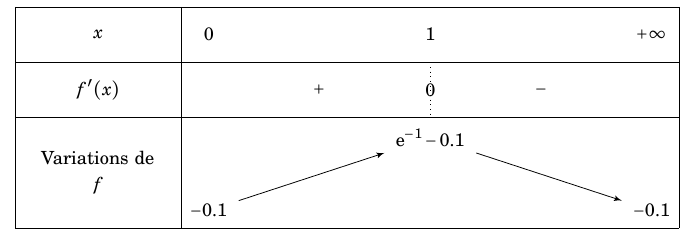 - Dresser, en le justifiant, le tableau de variations de la fonction $f$ sur $[0~;~+ \infty[$.