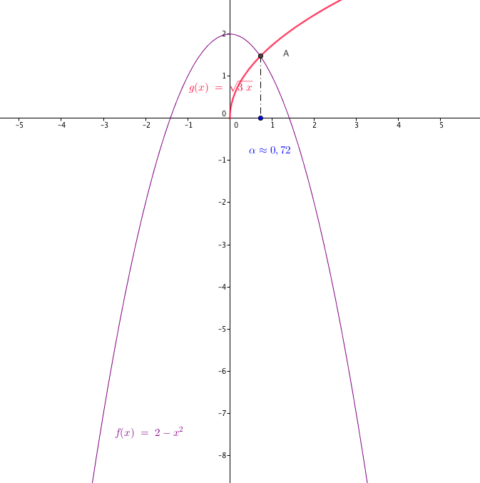 On résout $f(x)= g(x)\rightarrow 2-x^2-\sqrt{3x}=0$