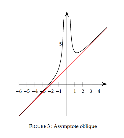 La courbe de $f:x\mapsto x+2+\dfrac{1}{x^2}$ admet une asymptote oblique d'équation $y=x+2$ au voisinage de $+\infty$ et au voisinage de $-\infty$.