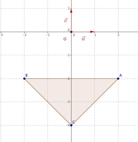 - Le vecteur $\vec{CB}$ a pour affixe $z_{\vec{CB}}=z_B-z_C=2-2i-(-4i)= -2-2i+4i= -2+2i$ donc $\vec{CB}$ a pour coordonnées $\begin{pmatrix} -2 \\ 2 \end{pmatrix}$
